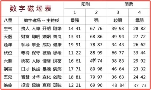 11/22、88/99、77/88、44/33,伏位磁场数字与前后的数字组合来判断吉凶。