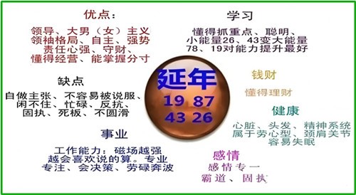 (19/91、87/78、34/43、26/62)则被认为代表利事业和健康方面,适合做首领、大佬、领导者、老板等角色。