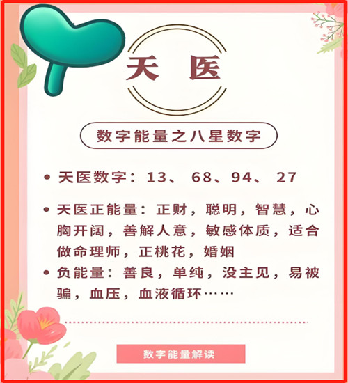 手机号码中的“天医星”是数字能量学中一个重要的概念,象征财富、正姻缘和健康。