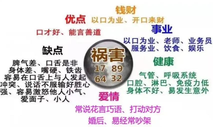 根据数字能量学的理论,祸害磁场(如数字组合17、71、89、46、64、23、32等)通常与口才出众、能言善辩、容易引发口舌是非等特质相关,但也伴随着脾气暴躁、容易得罪人、健康问题...查看更多
