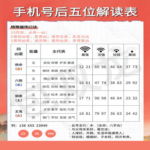 当原号码存在“五行冲克”“能量失衡”,如金克木的问题时,手机号五行金旺时,有克木的含义,被认为会耗泄使用者的“运势能量”;而更换符合个人喜用五行的新号码,能快速构建“能量相生”的适配关系,实现从“耗泄”到“助力”的即时转变,这种“即换即适配”的特性,让其被解读为“改运最快”。