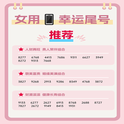 女性选择手机号码时,数字的吉凶会影响运势,包括婚姻情感、事业、财运和健康等方面。数字能量学认为,手机号码的后八位数字组合尤其关键,它们形成特定的能量磁场(如吉星或凶星),从而对使用者产生影响。