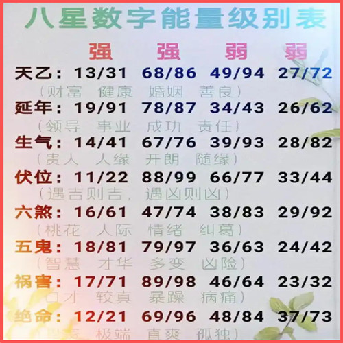 对事业发展和健康有积极作用。但需注意,能量过强的延年磁场(如19、91)可能使女性性格显得较为强势,在婚姻中需注意沟通和平衡,女性手机号里延年磁场能量不要太强,搞事业的女性的话,选用34/43、26/62等三四级磁场就够用了,女性太强势注定不幸福。