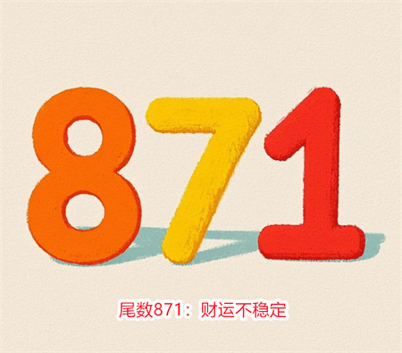 尾数871可能带来一定的稳定性和耐心等待的机会,但祸害星的存在可能削弱这种效果,导致财运不稳定或破财风险。